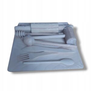 Mini stolnica drewnniana dla dzieci z przyborami kuchennymi zestaw 23x20cm