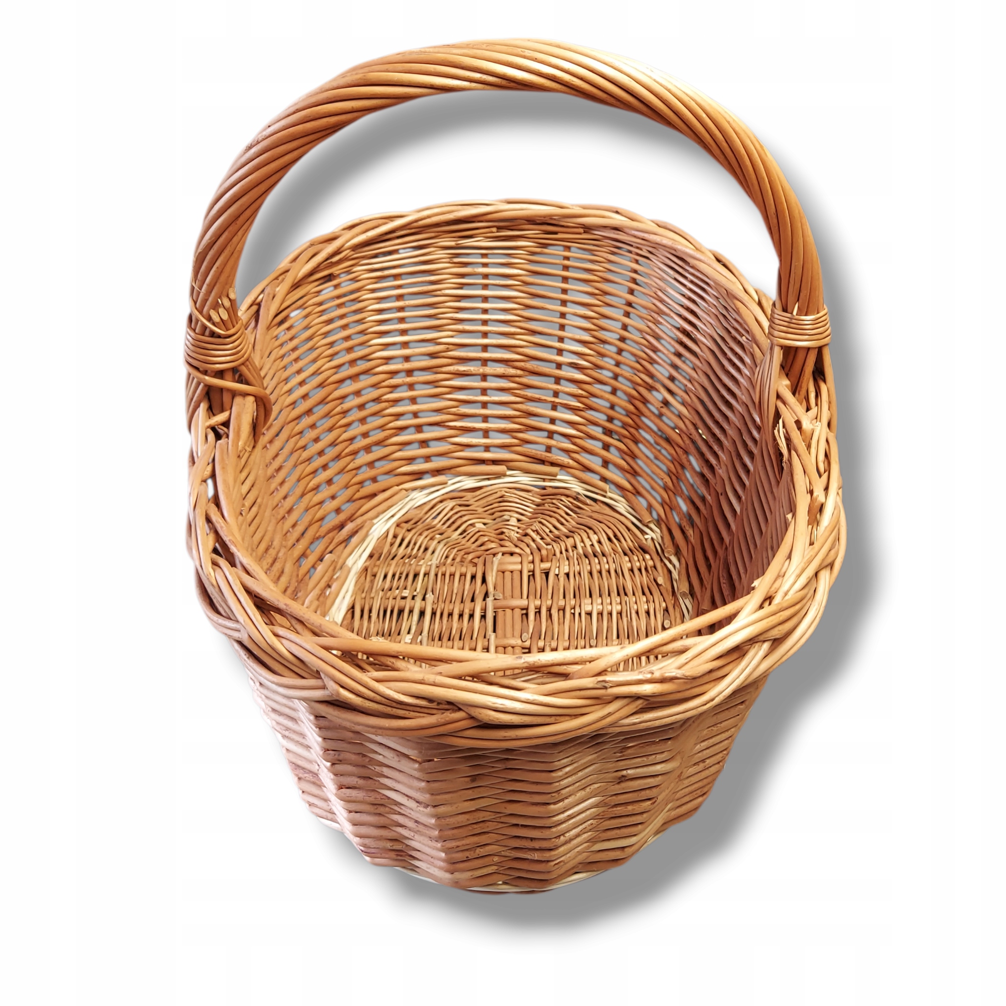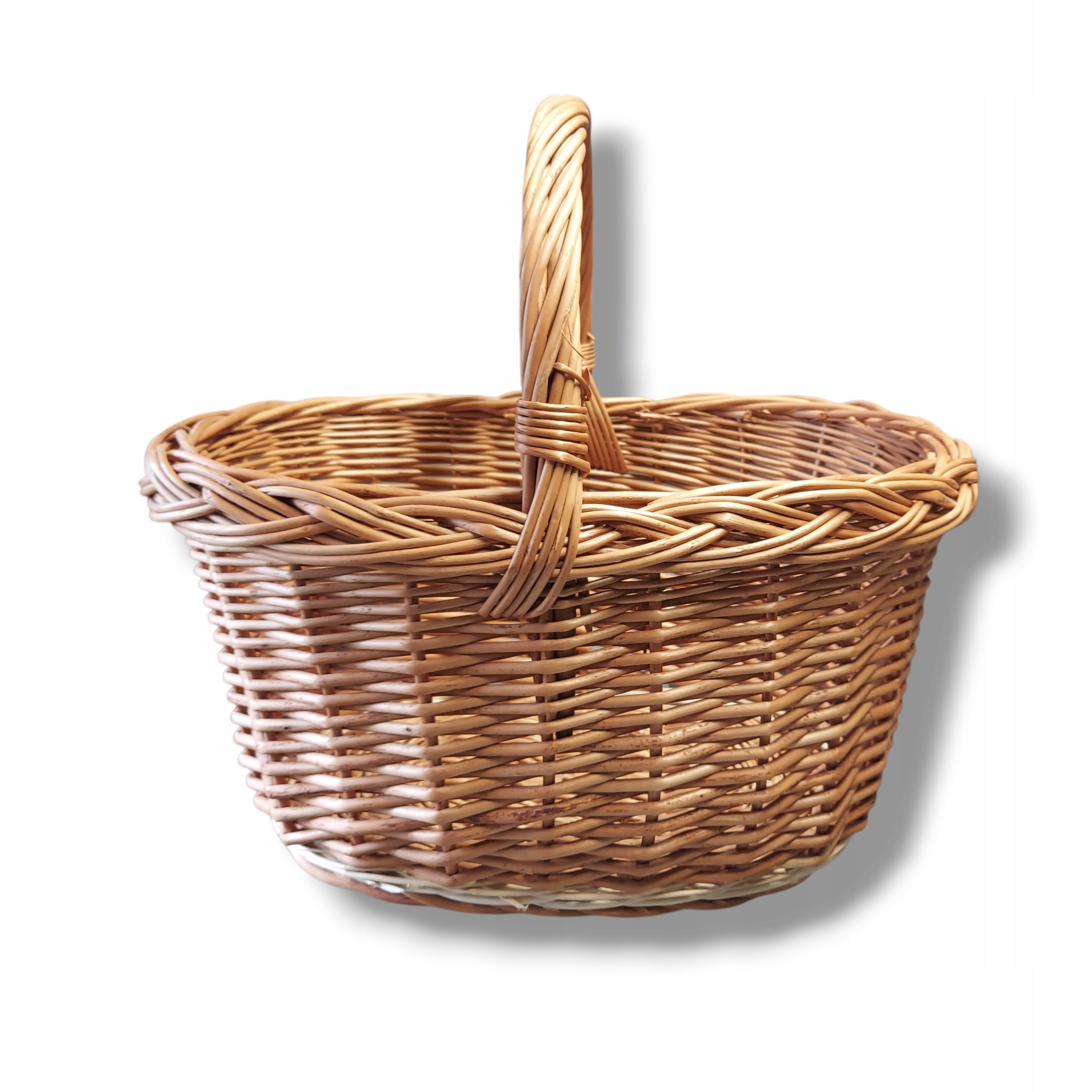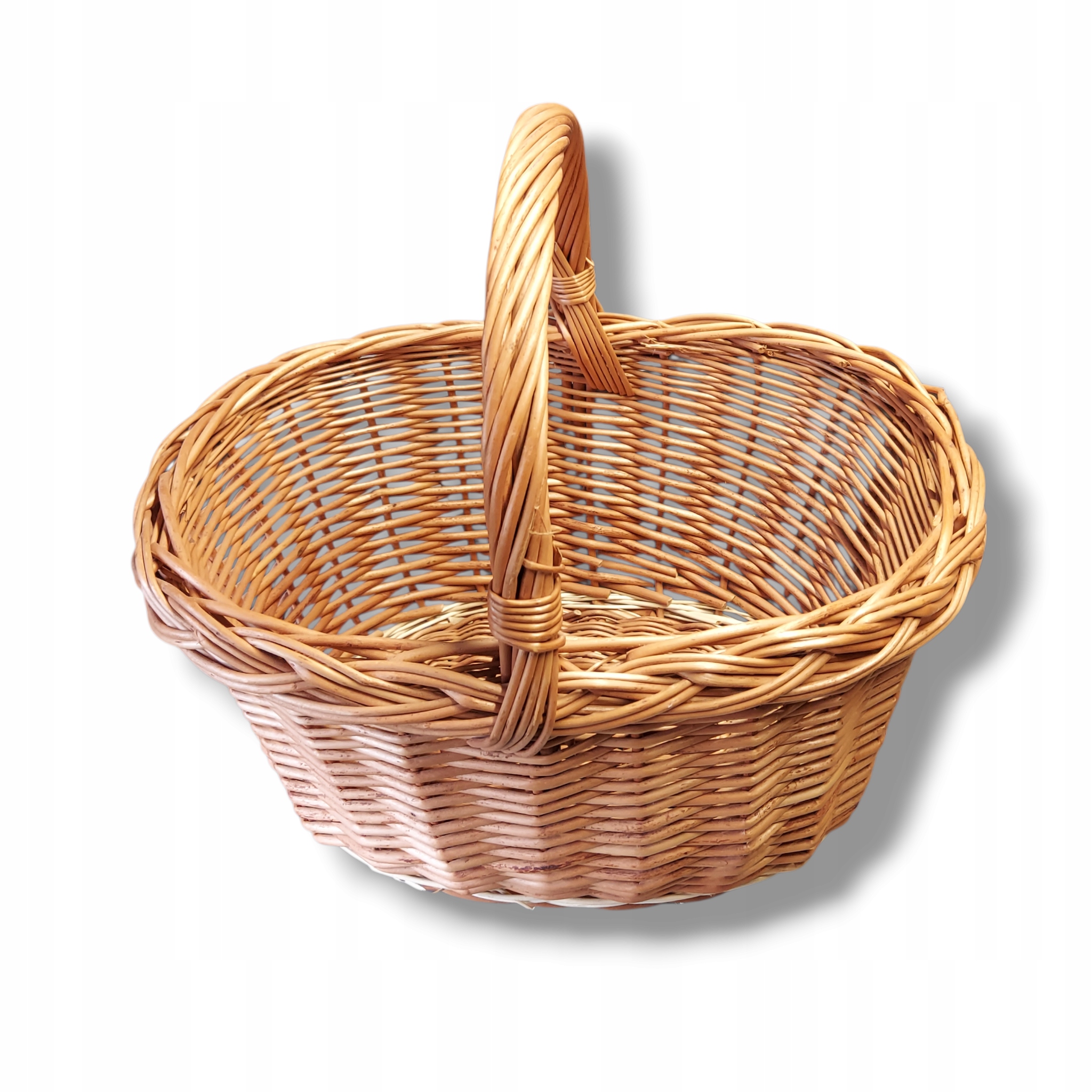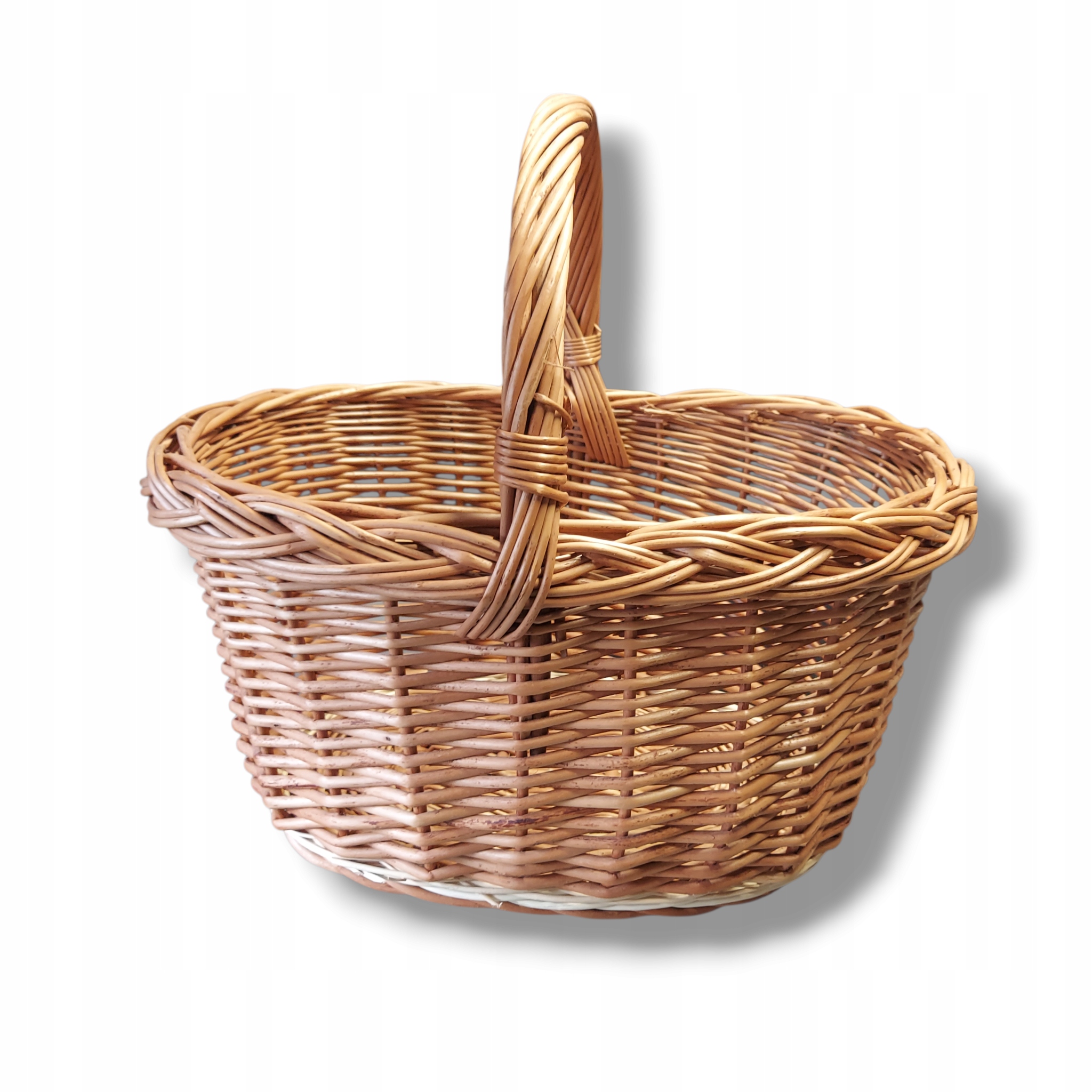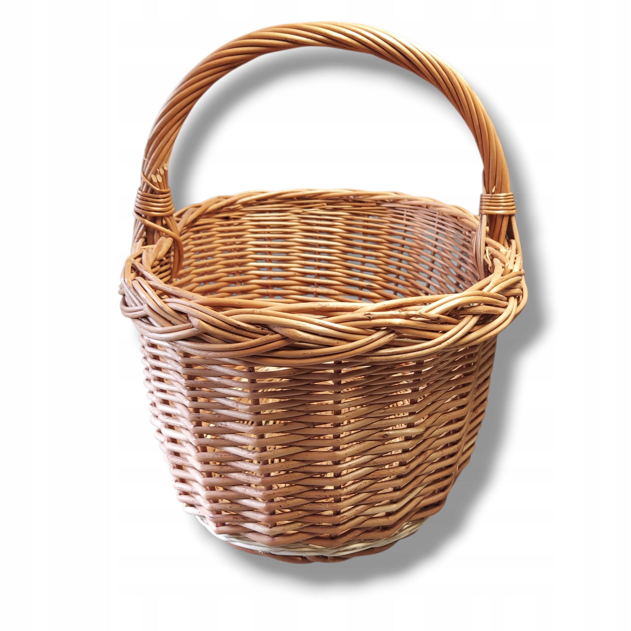 Ręcznie wykonany koszyk wiklinowy z unikalnym splotem, idealny do przechowywania i dekoracji wnętrz. Jego naturalny urok i solidna konstrukcja dodadzą ciepła każdemu pomieszczeniu. Doskonały jako koszyk na owoce, pieczywo lub drobiazgi, a także jako oryginalny element dekoracyjny.