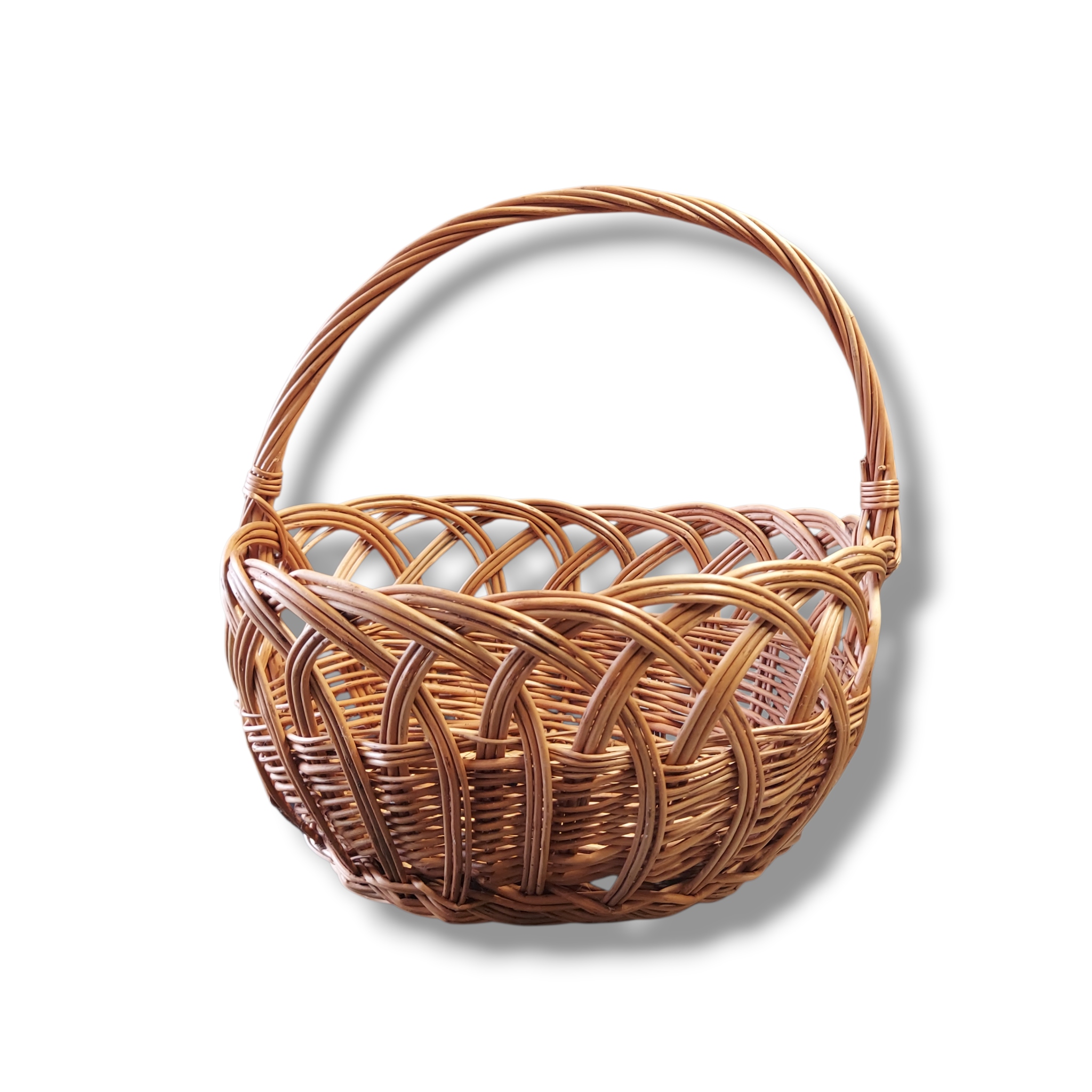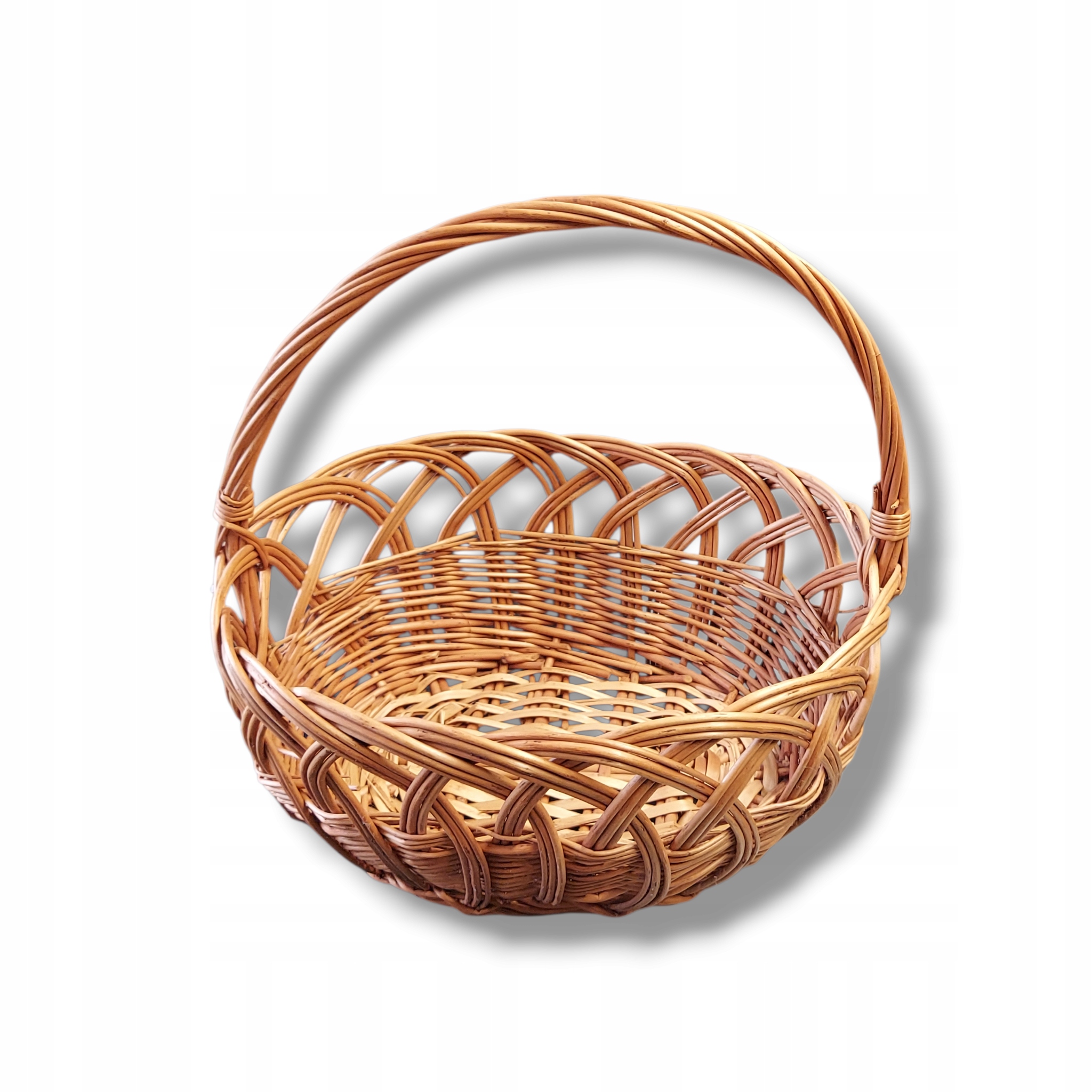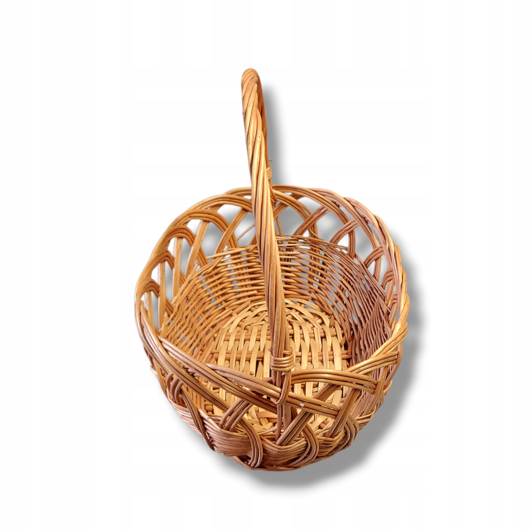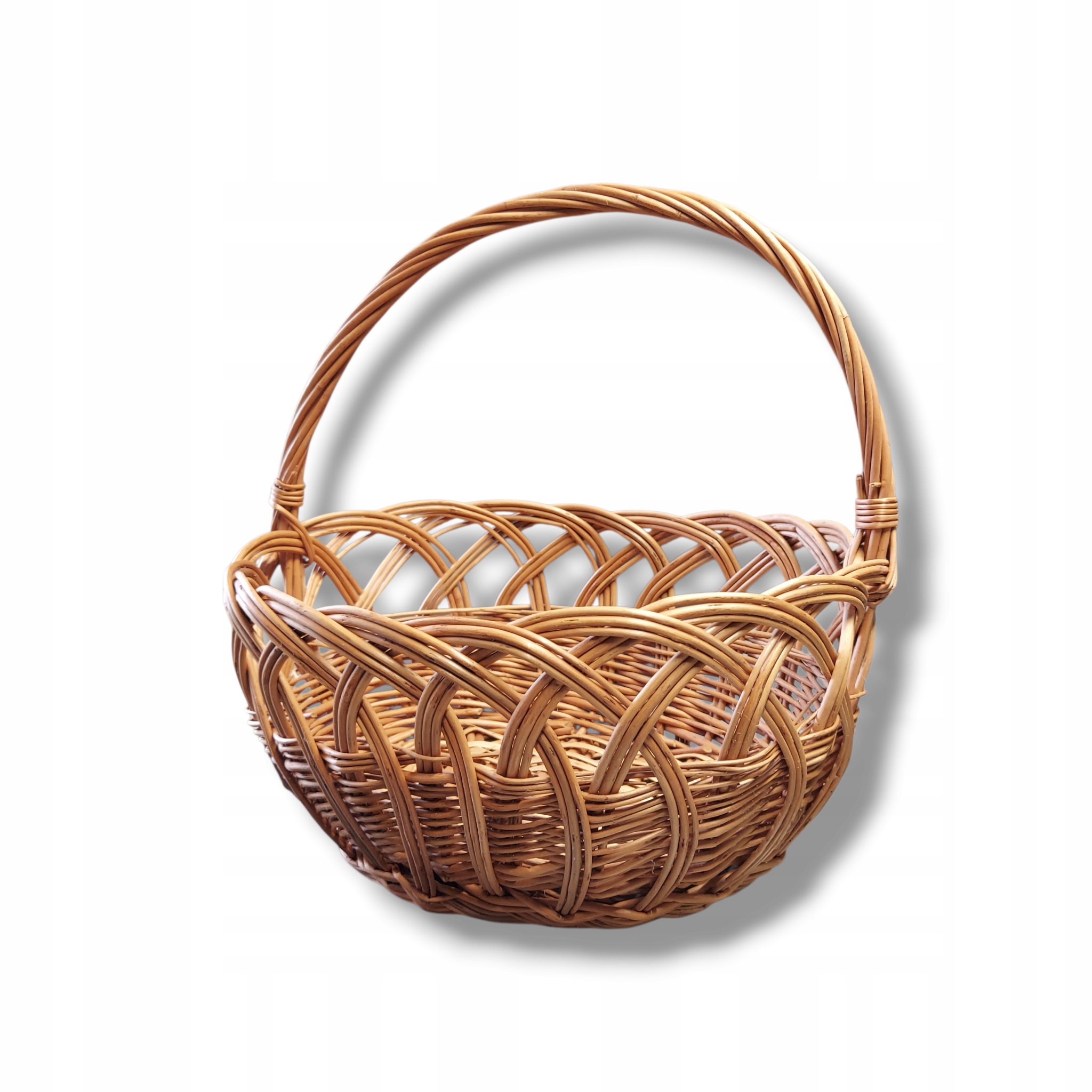 Ręcznie wykonany koszyk wiklinowy z unikalnym splotem, idealny do przechowywania i dekoracji wnętrz. Jego naturalny urok i solidna konstrukcja dodadzą ciepła każdemu pomieszczeniu. Doskonały jako koszyk na owoce, pieczywo lub drobiazgi, a także jako oryginalny element dekoracyjny.
