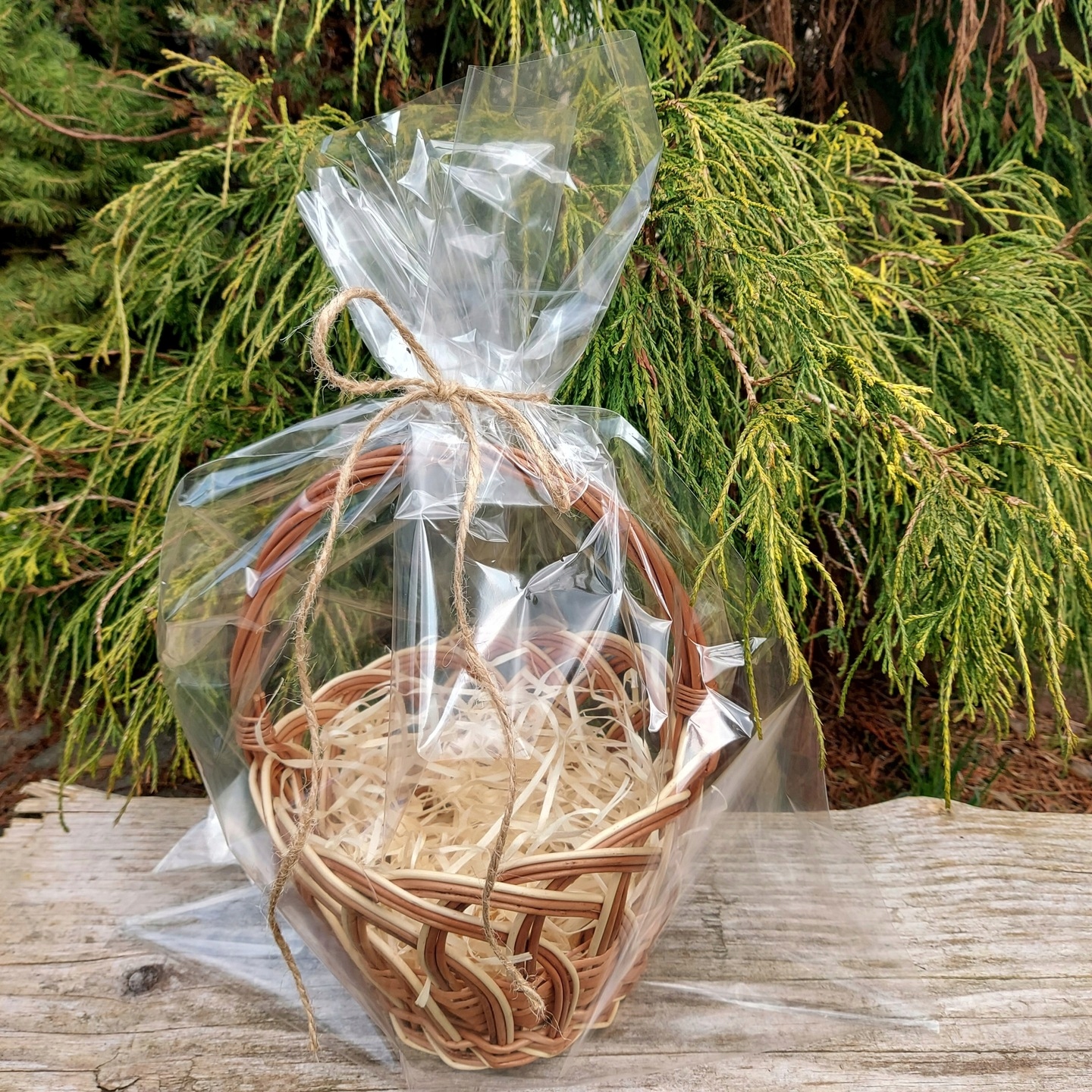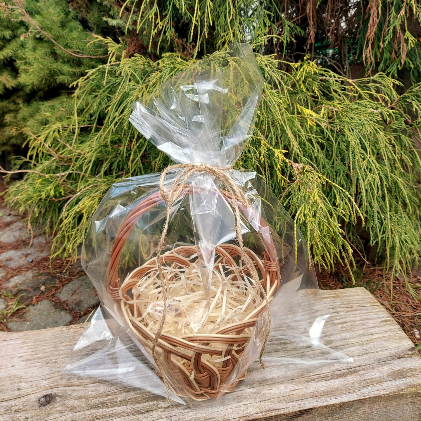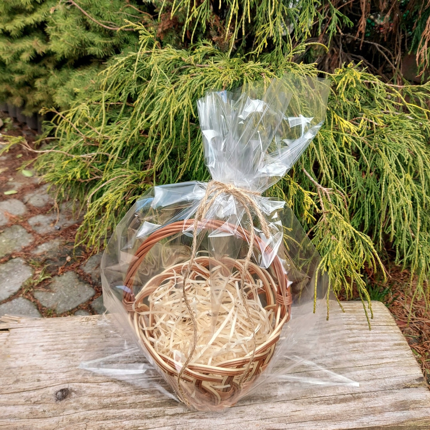 Odkryj urokliwy, ręcznie wyplatany koszyk prezentowy, idealny do stworzenia wyjątkowego upominku na każdą okazję. Wypełniony naturalnym wypełniaczem, czeka na spersonalizowanie wybranymi drobiazgami i smakołykami. Całość elegancko zapakowana w przezroczysty celofan i przewiązana naturalnym sznurkiem, tworząc gotowy do wręczenia, stylowy prezent.